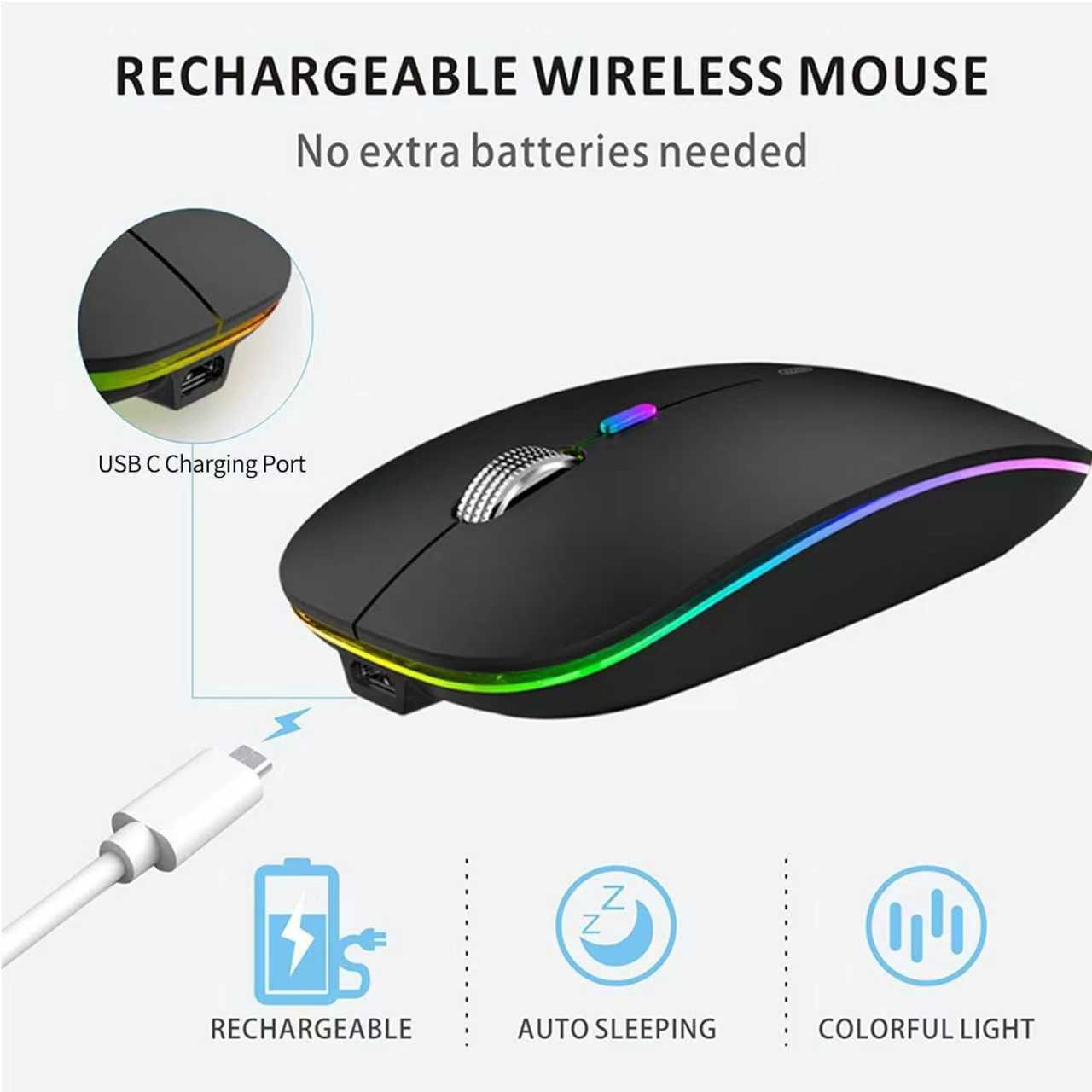 Energy Saving: The mouse will be in sleep mode in 8 mins of inactivity. And the LED light can be turned off by the bottom light switch.